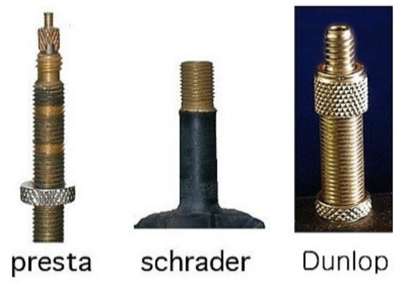 대부분 자동차 타이어의 공기 주입구는 아래 사진에보이는 여러 모양 중에서 슈레더(Schrader) 모양이다.