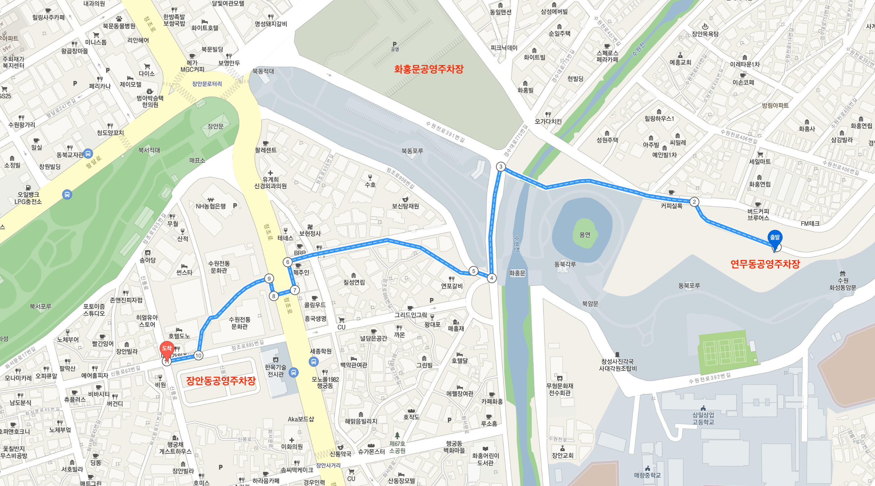 만약, 위 장안동 공영 주차장에 주차 공간이 없으면, 화홍문 공영 주차장을 이용한다. 다른 주차장보다는 규모가 훨씬 크다.