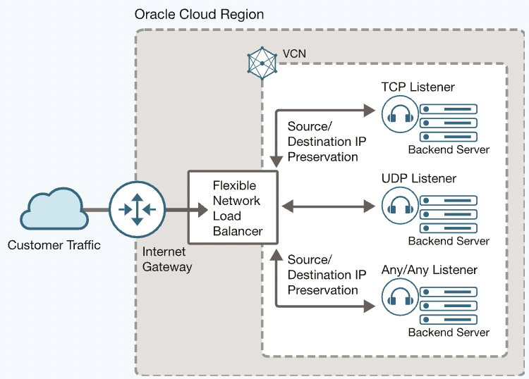 A Network Load Balancer is a non-proxy layer-4 load balancing solution. It offers a scalable VIP to the customer and additionally provides the benefits of flow high availability, low latency, and source IP and port preservation.