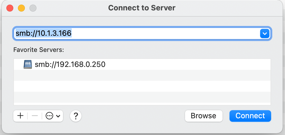 클라이언트 PC에서 아래와 같이 Samba 서버에 접속시도한다. (아래는 Macbook에서 실행한 화면)