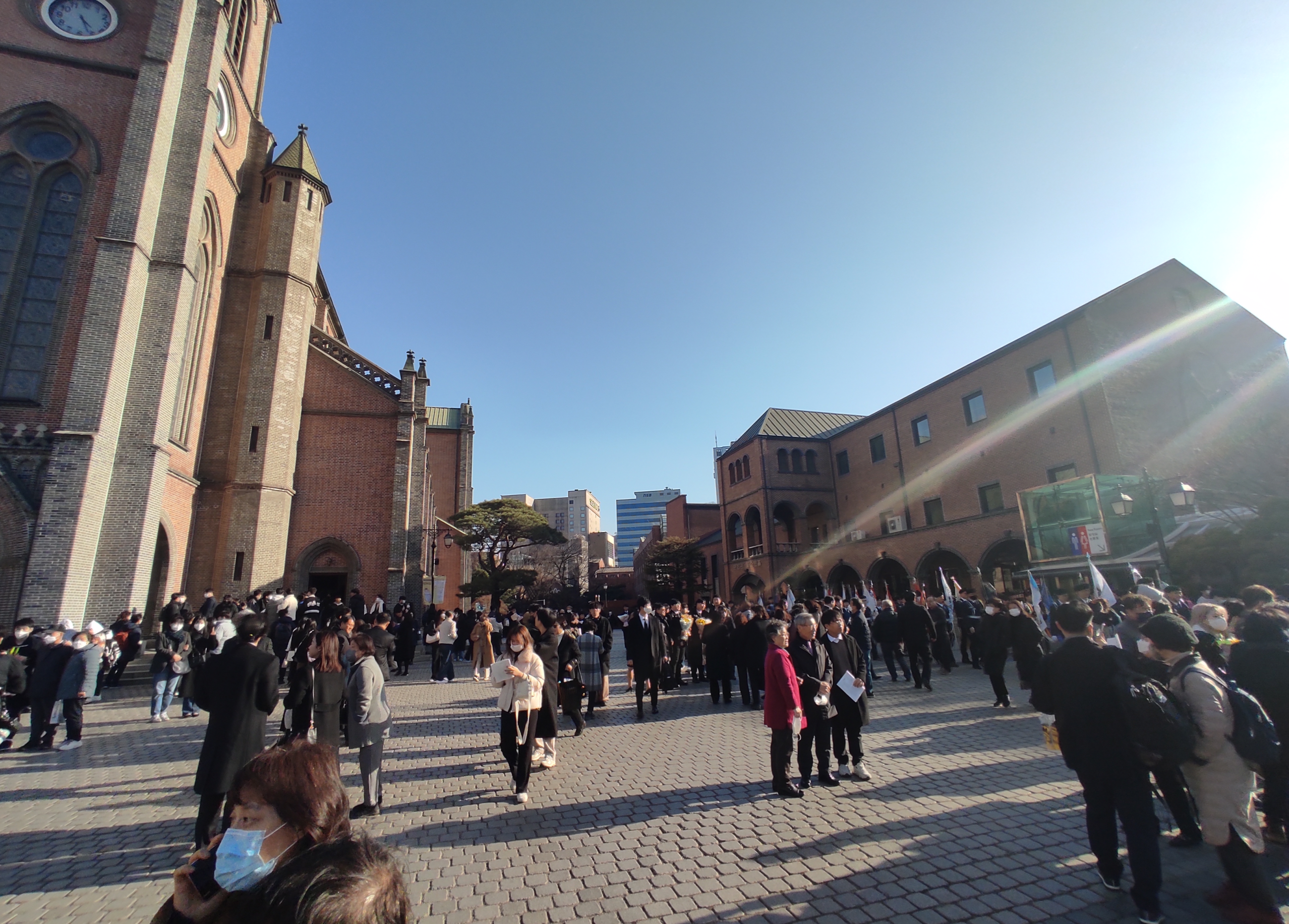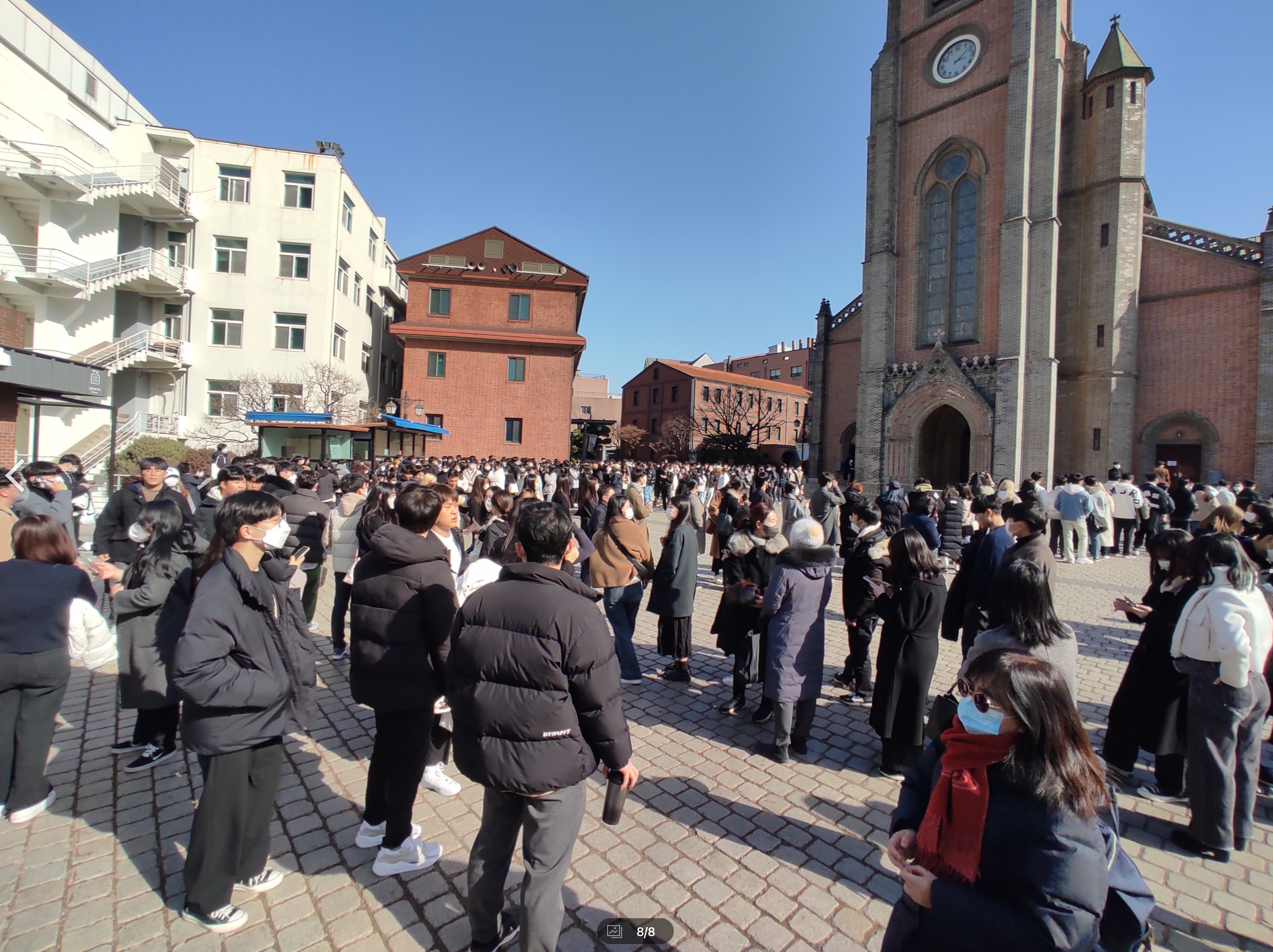 대성당, 문화홀 등 미사를 할 수 있는 공간은 자리가 꽉 차서 입장 못하고, 밖에서 기다리는 학생이 적어도 500명은 되는 것 같다.