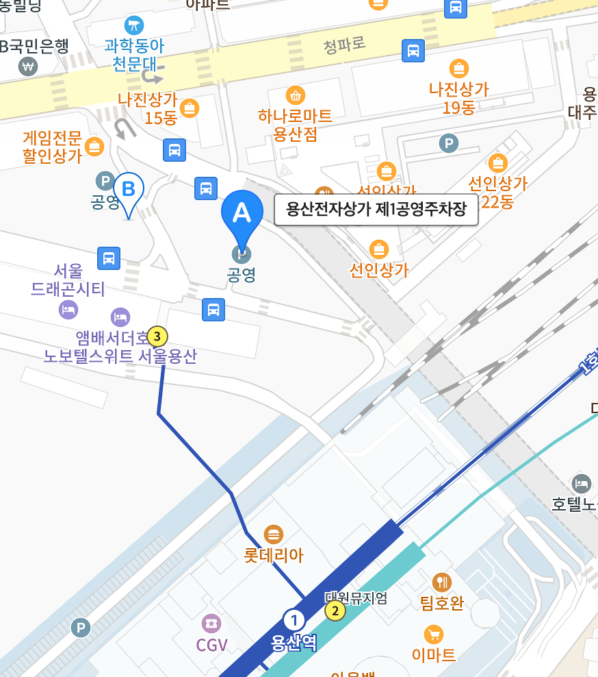 나는 선인상가 21동 앞 '용산전자상가 제1공영주차장'에 주차했다.