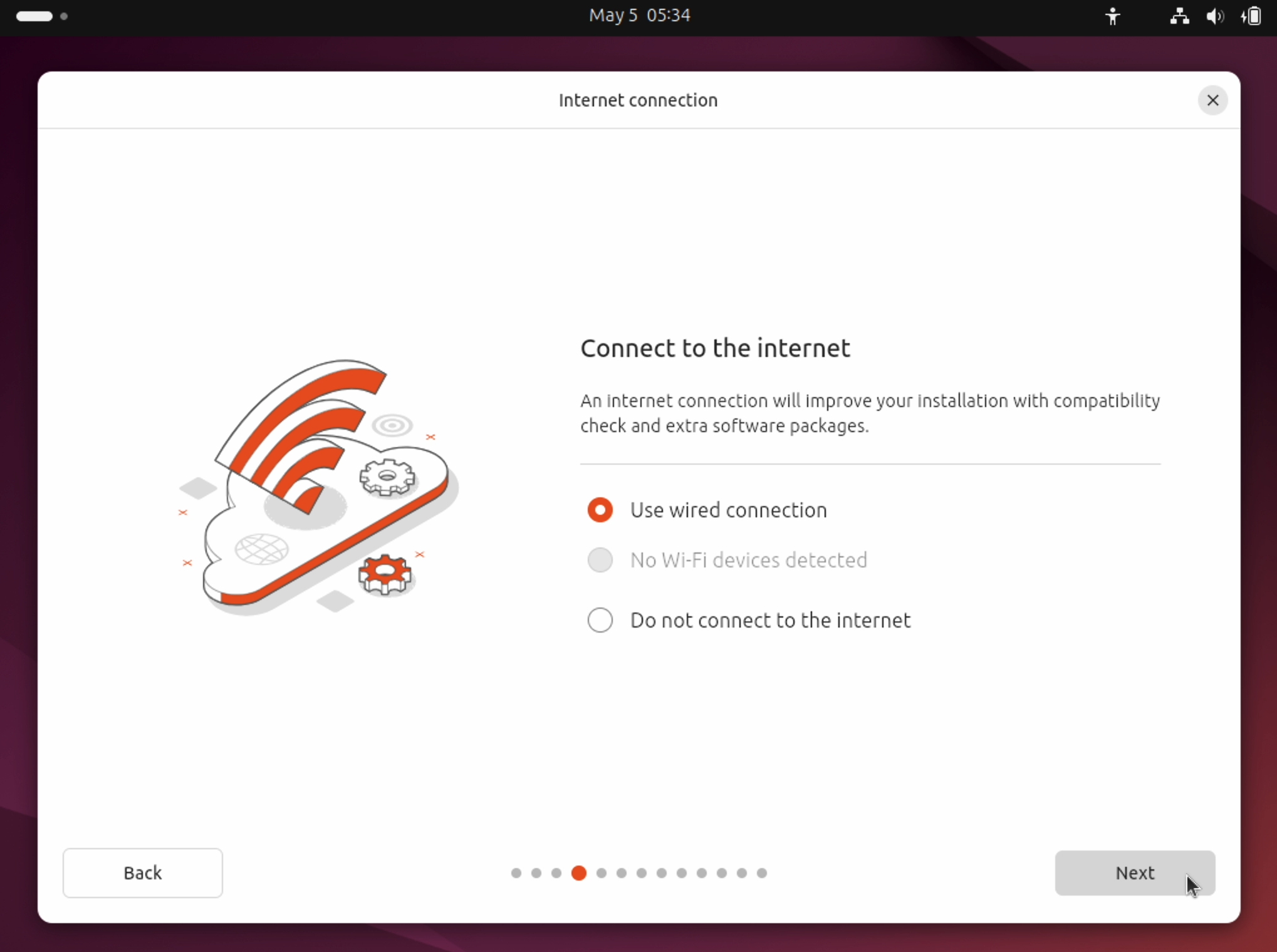 Ubuntu 24.04를 설치하는 중에 사용할 인터넷 연결 방식을 선택한다.