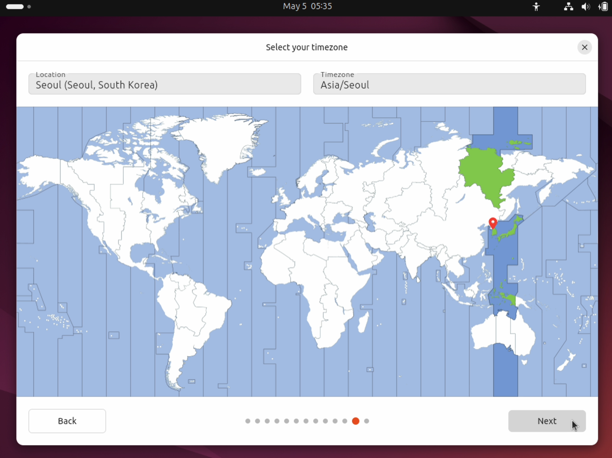 시간대를 설정한다. (Asia/Seoul을 선택)