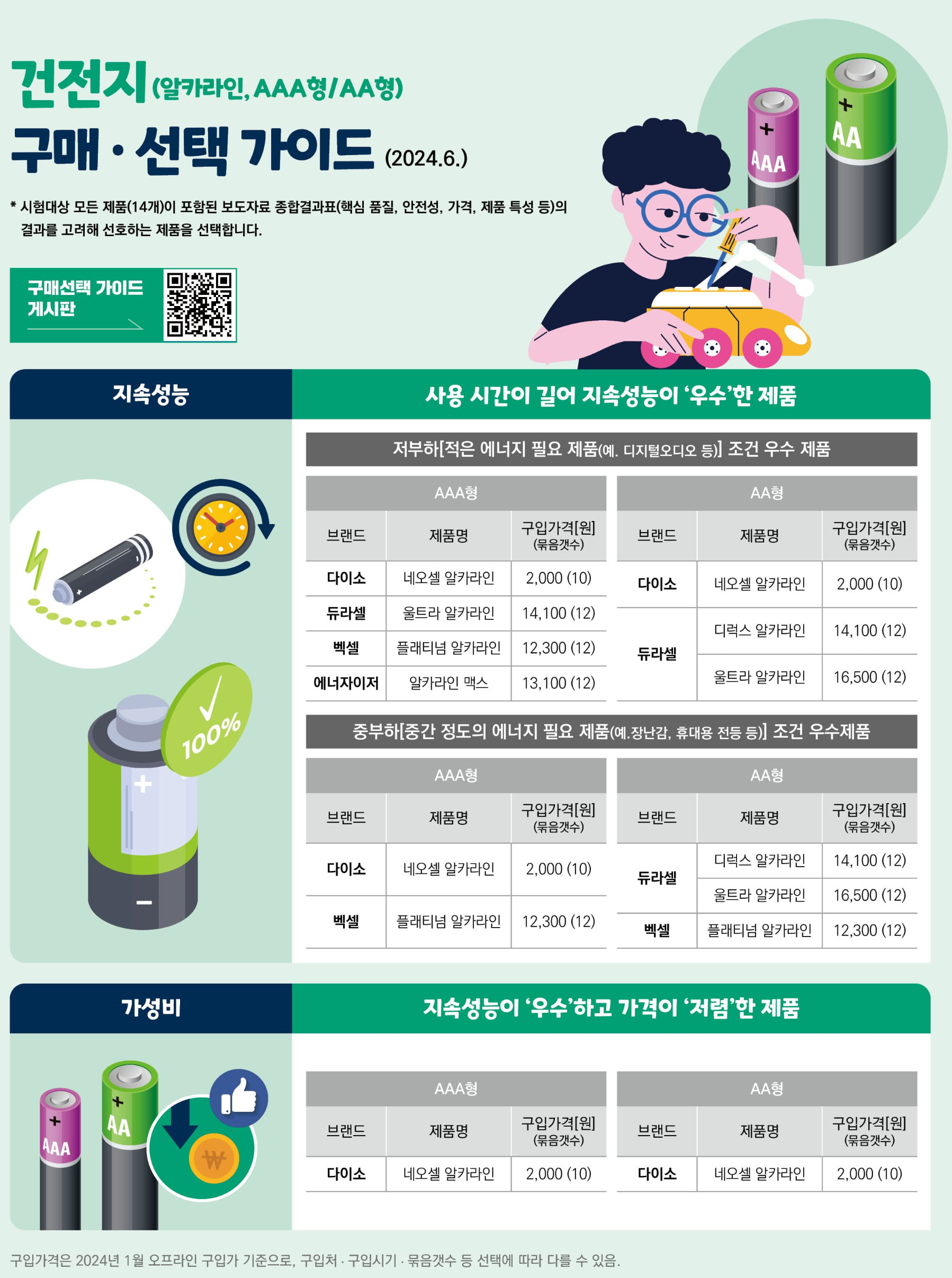 한국소비자원이 건전지 14종을 비교 시험한 결과