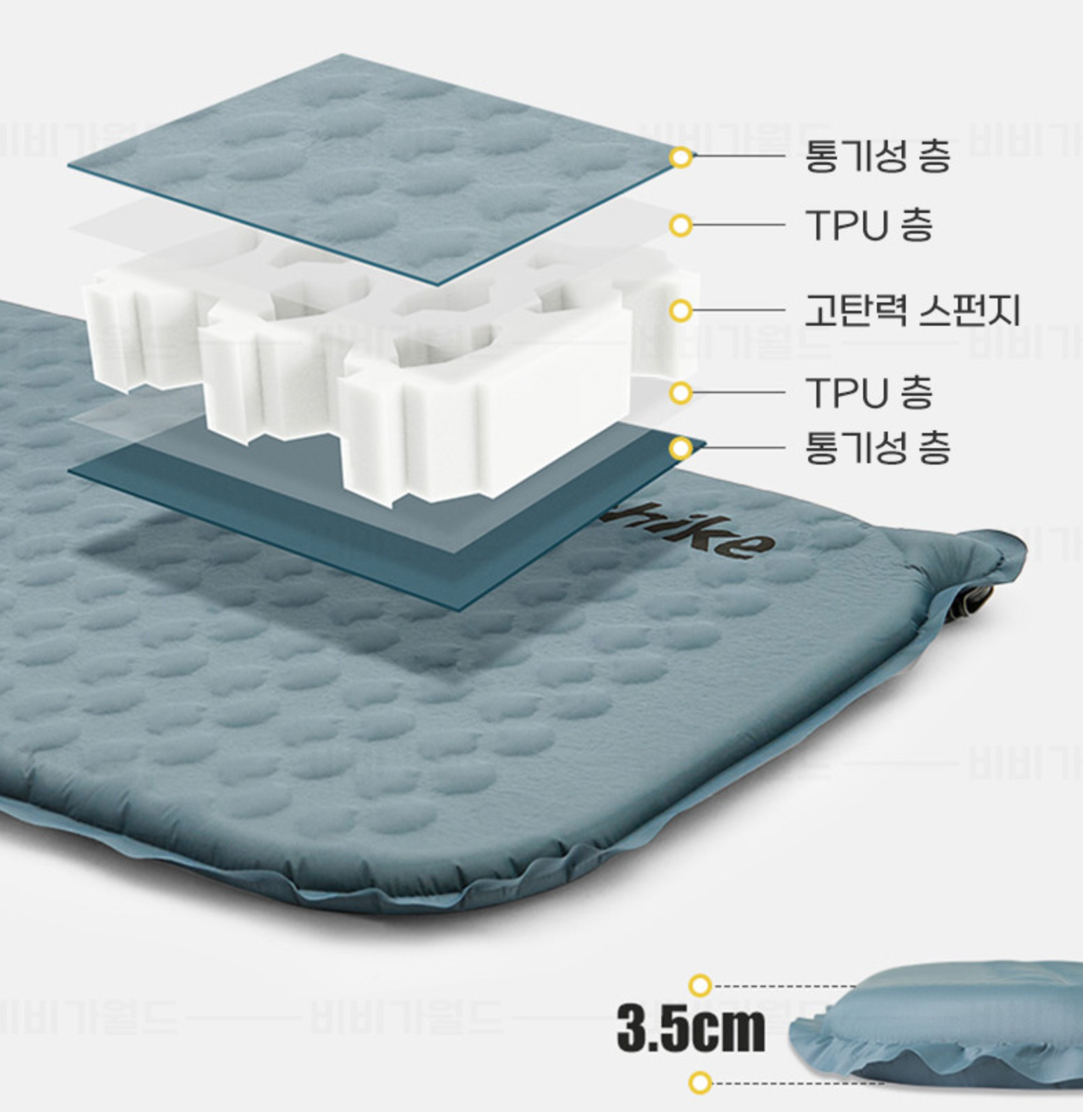 에어 매트 사이즈: 185(길이) x 55(폭) x 3.5(두께) 단위: cm