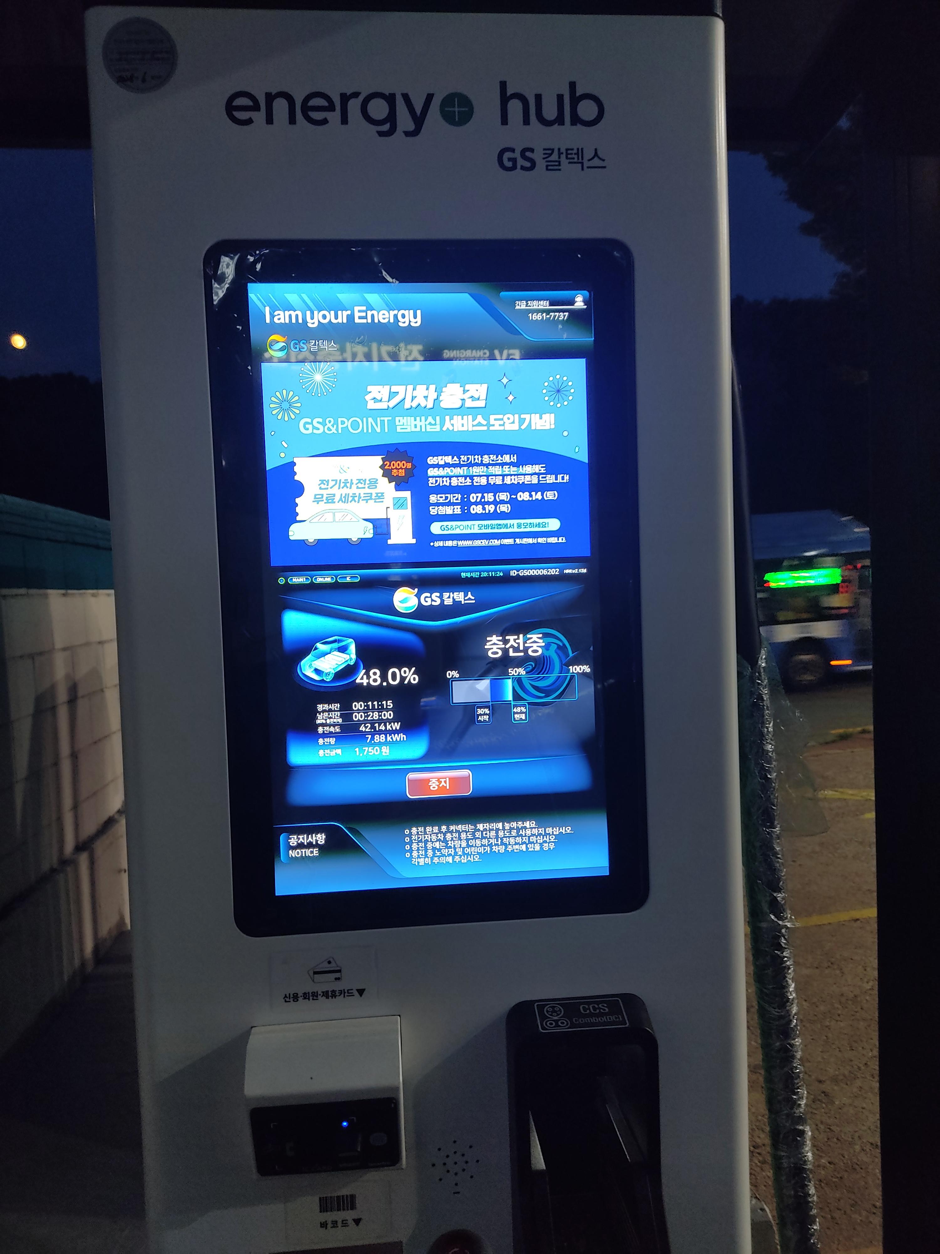 일반 공용 충전기와 다르게 GS칼텍스 충전기는 화면이 많이 크다.