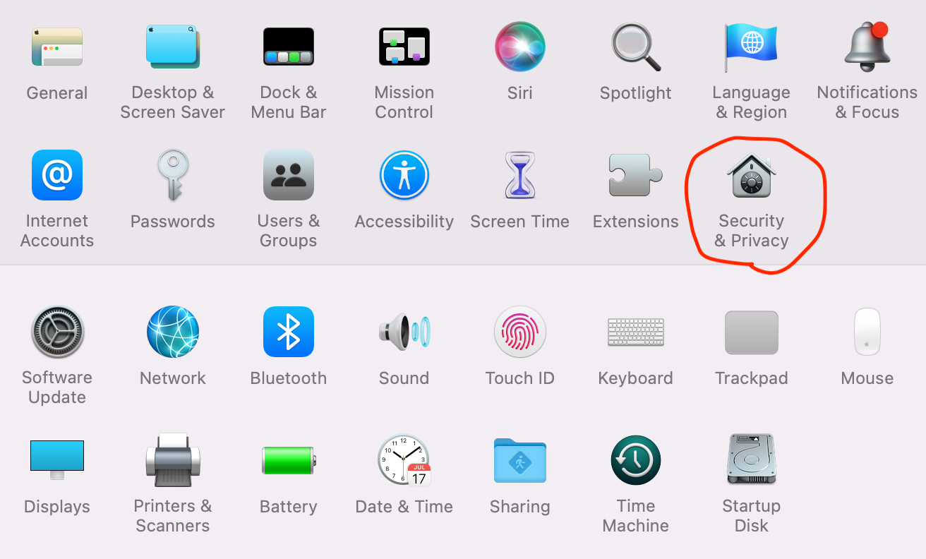 (1) [Security & Privacy] 항목을 클릭한다.