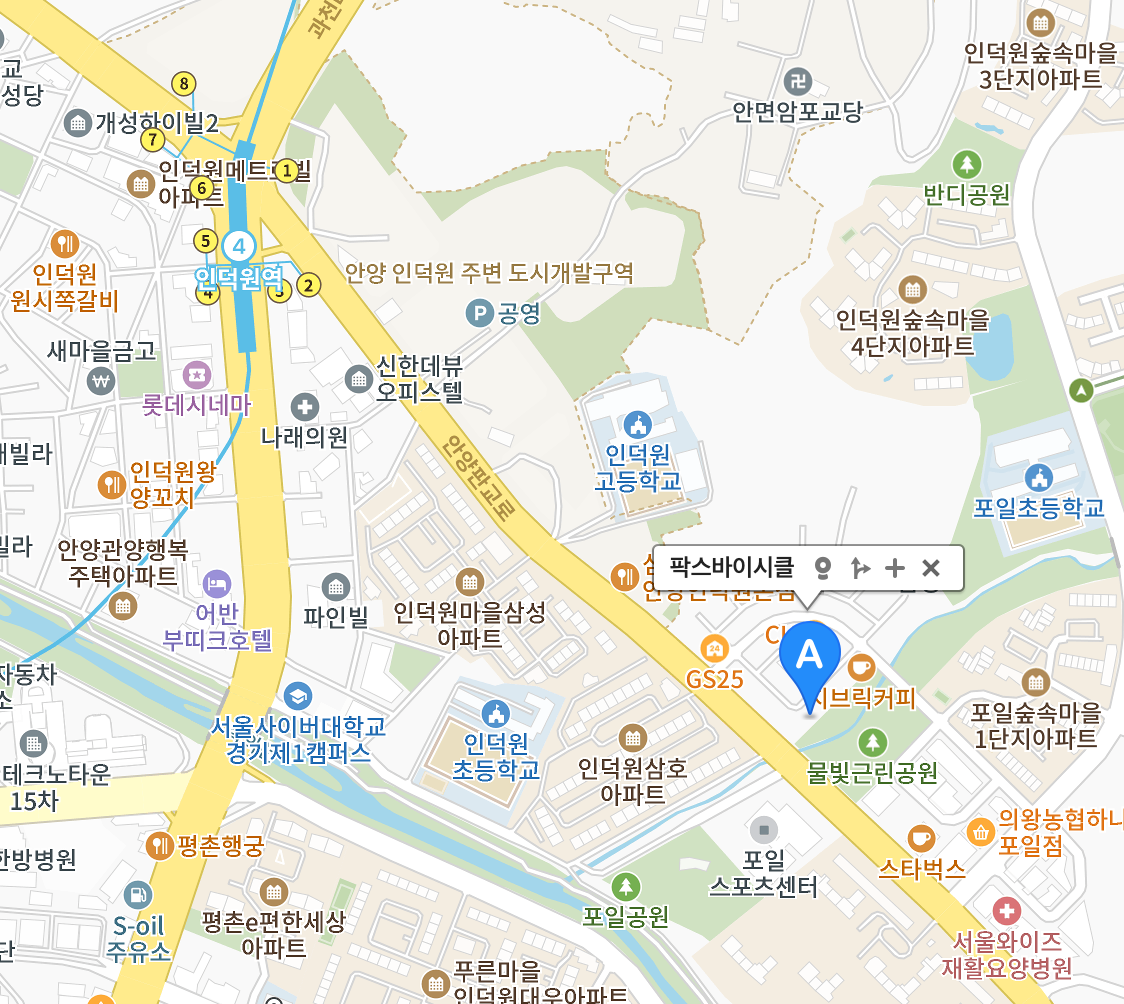 자동차를 타고 평촌, 인덕원까지 갈 생각으로 바이크 정비샵 검색을 해보니 인덕원역 근처(의왕시 포일동)에