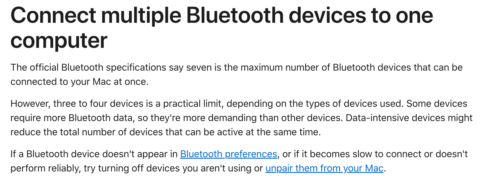 나는 맥북 M2에 총 4개의 블루투스 장치를 연결해서 사용하고 있다.